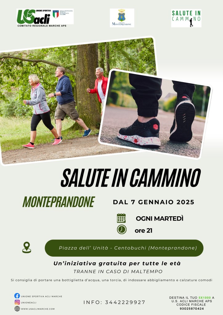 Si tratta di un progetto di promozione dell’attività fisica che va avanti ininterrottamente a Monteprandone dal 2013 e che permette a cittadini di ogni età di fare movimento e partecipare a un gruppo di cammino.