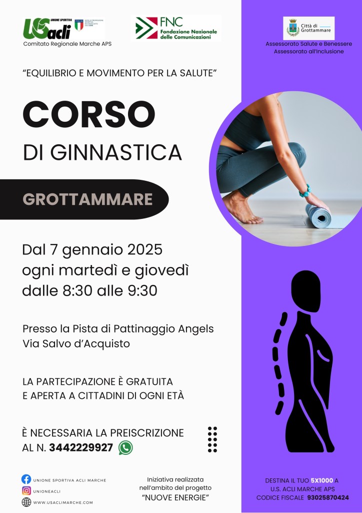 Il progetto consiste in un corso gratuito di ginnastica posturale organizzato dall’Unione Sportiva Acli Marche Aps in col sostegno della Fondazione Nazionale delle Comunicazioni e del Comune di Grottammare, assessorati alla salute e al benessere e inclusione.