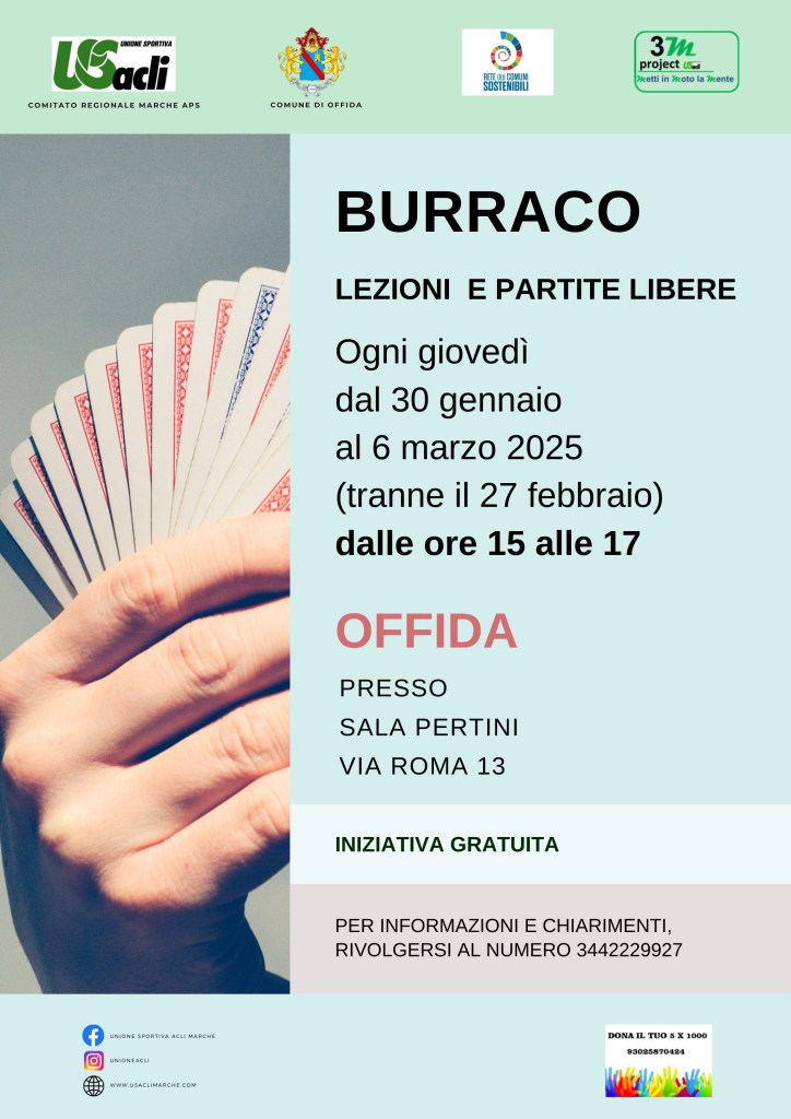 Fino al 6 marzo (tranne il 27 febbraio), infatti, ogni giovedì dalle 15 alle 17, si svolgerà un vero e proprio laboratorio del gioco del burraco con lezioni (per chi non sa giocare) e partire libere (per chi ne conosce le regole).