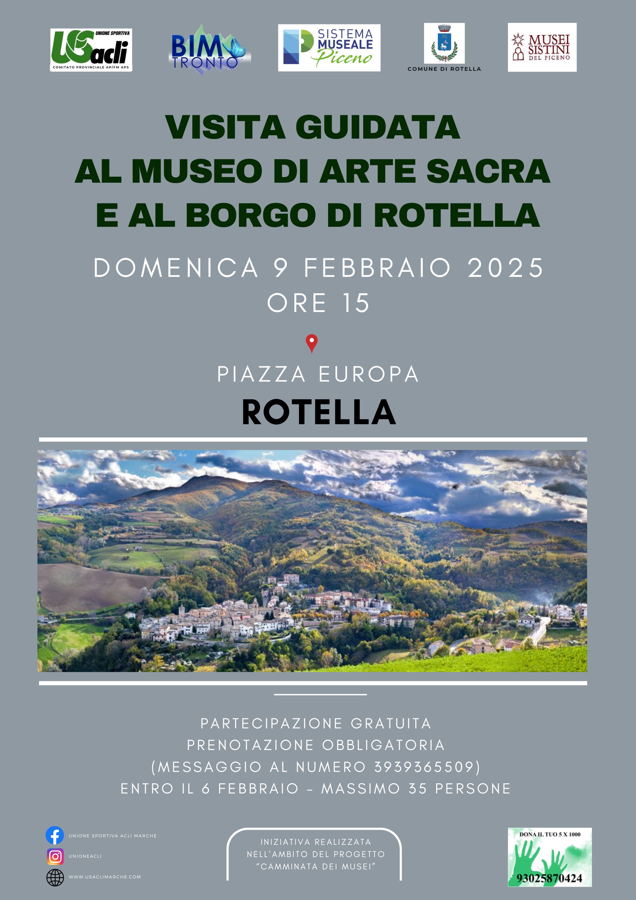 L’iniziativa è realizzata da U.S. Acli provinciale Aps, col contributo di Bim Tronto, con la collaborazione di Sistema museale Piceno, Musei Sistini del Piceno e Comune di Rotella.