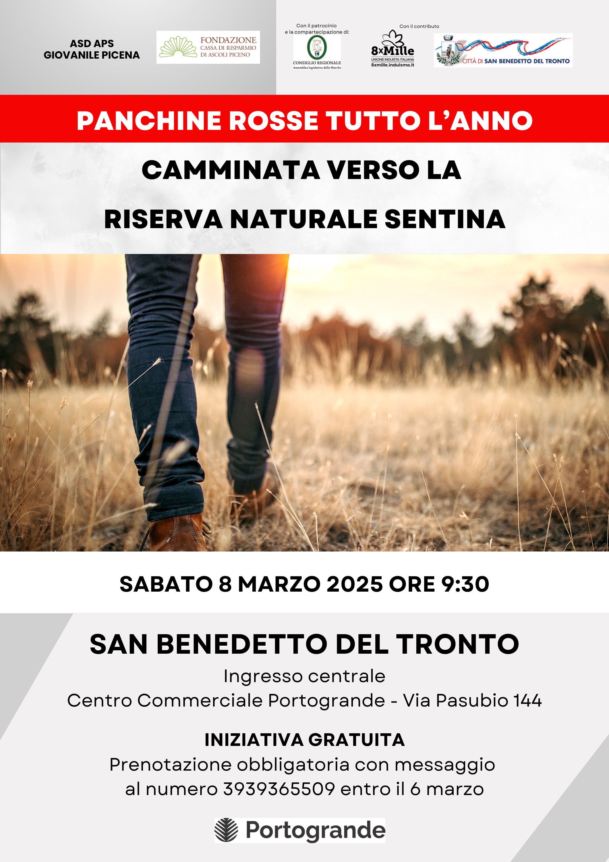 La manifestazione rientra nel progetto “Panchine rosse tutto l’anno” di sensibilizzazione sulla grave problematica della violenza sulle donne ed è organizzata da Associazione Giovanile Picena ASD APS in occasione della Giornata Internazionale della donna.