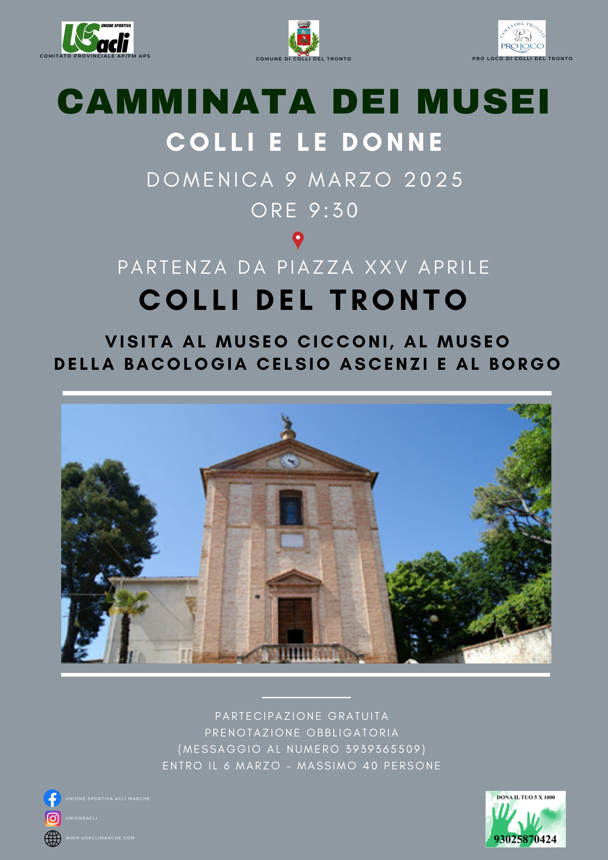 L’iniziativa è realizzata da U.S. Acli provinciale Aps col patrocinio del Comune di Colli del Tronto e la collaborazione della Pro Loco di Colli del Tronto.