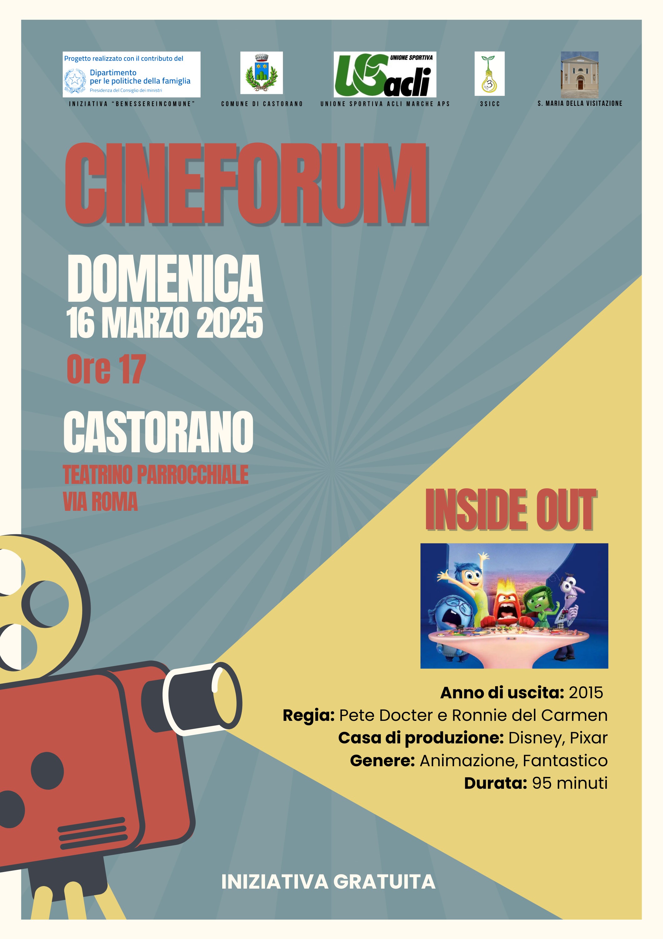 CASTORANO – Domenica 16 marzo alle ore 17, presso il Teatrino Parrocchiale di via Roma, si terrà il primo di 5 appuntamenti dedicati al progetto di Cineforum comunale.