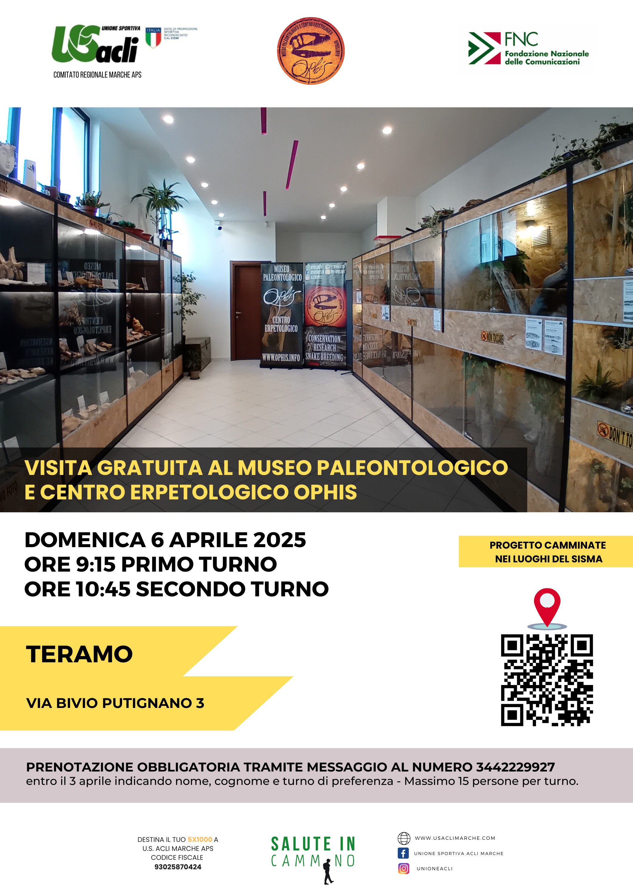 Domenica 6 Aprile è in programma una visita gratuita al Museo paleontologico e centro erpetologico Ophis sito in via Bivio Putignano 3 a Teramo.