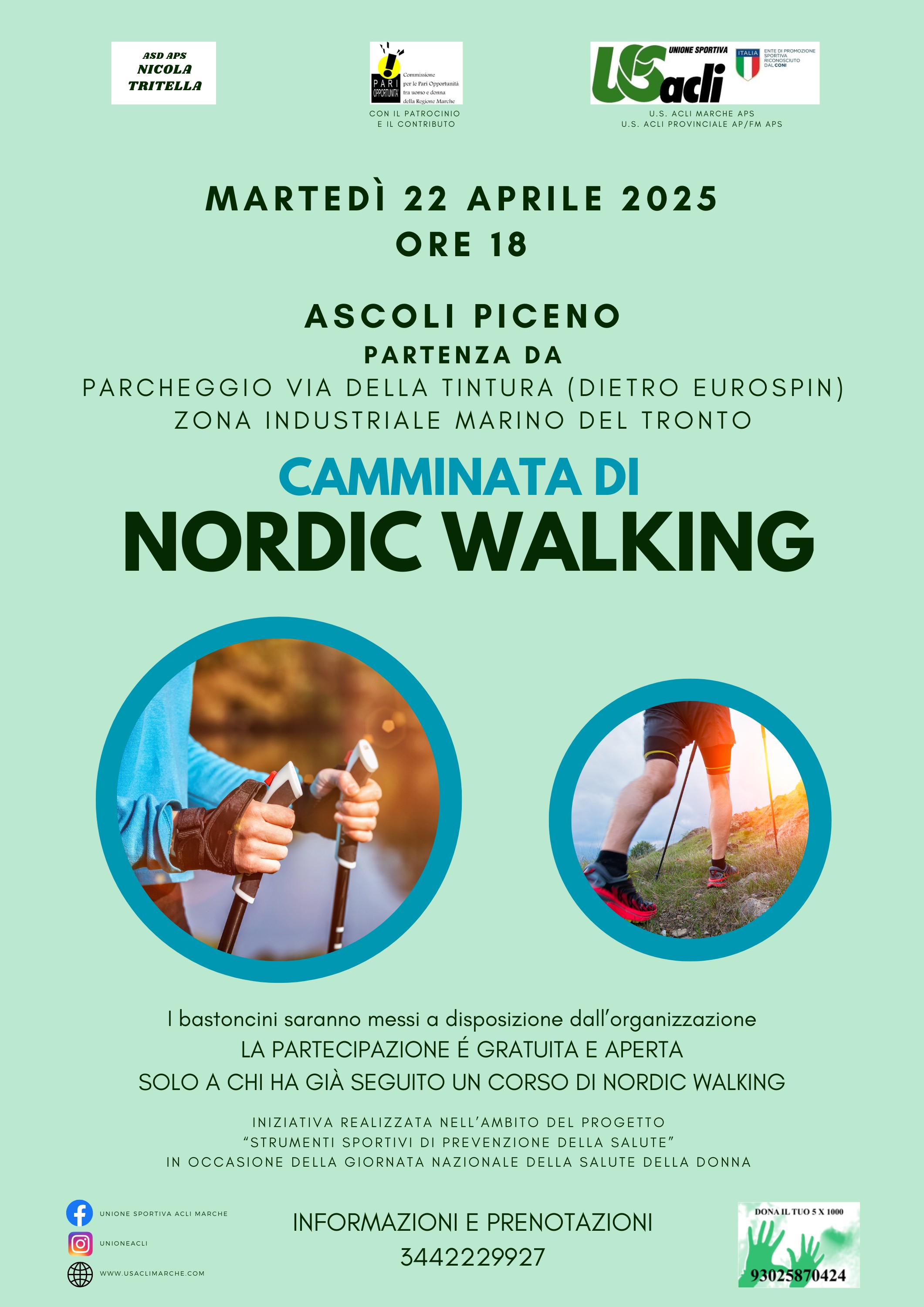 L’iniziativa, realizzata da A.S.D. APS Nicola Tritella U.S. Acli, col patrocinio e il contributo della Commissione per le pari opportunità tra uomo e donna della Regione Marche, ha già visto la partecipazione di 30 persone provenienti da varie zone della vallata del Tronto alla camminata che si è svolta presso la Pista ciclopedonale di Ascoli Piceno.
