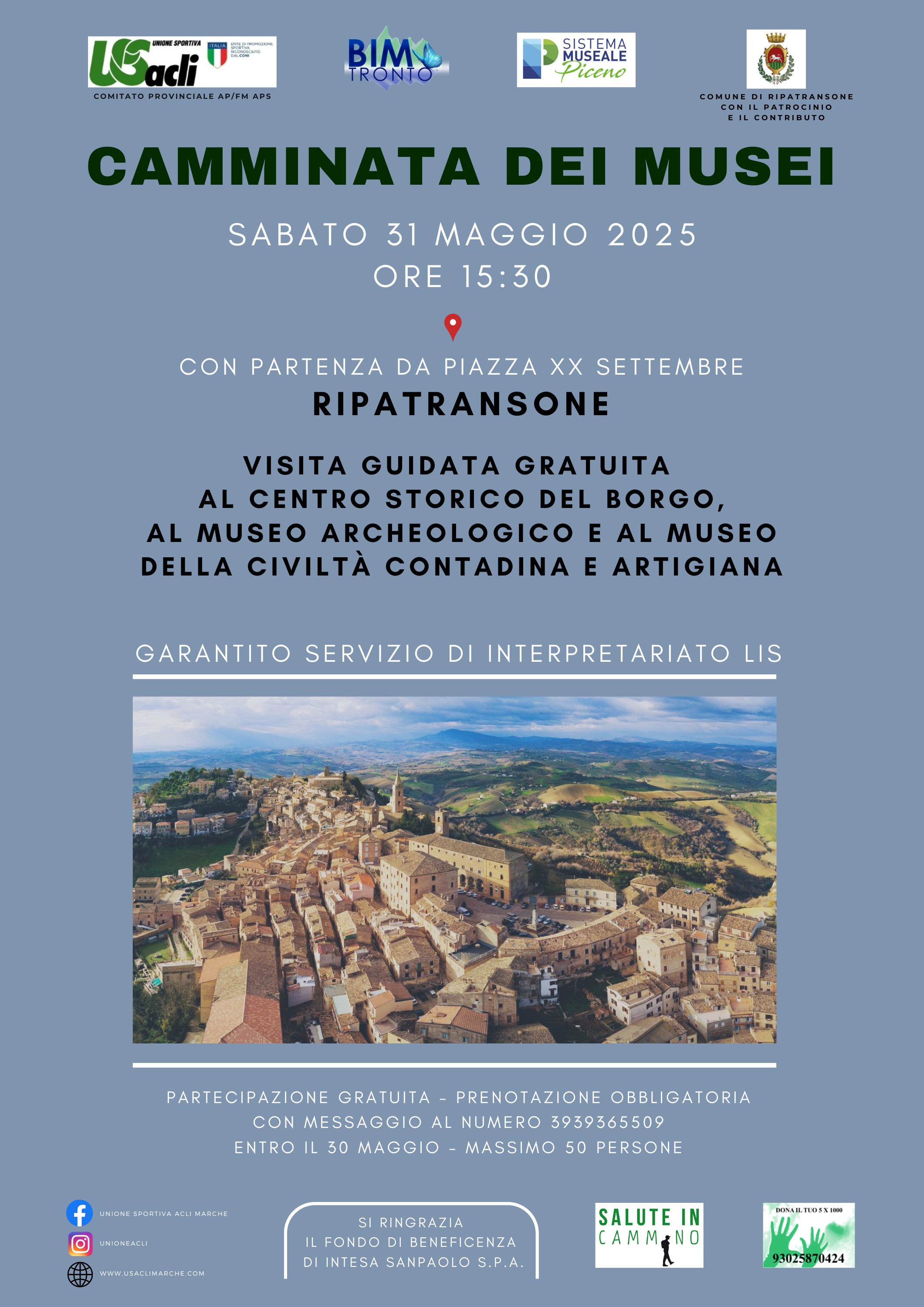 L’iniziativa rientra del progetto “Camminata dei musei” realizzato per il terzo anno consecutivo da Bim Tronto (che sostiene l’iniziativa) e U.S. Acli Provinciale nelle strutture del Sistema Museale Piceno.