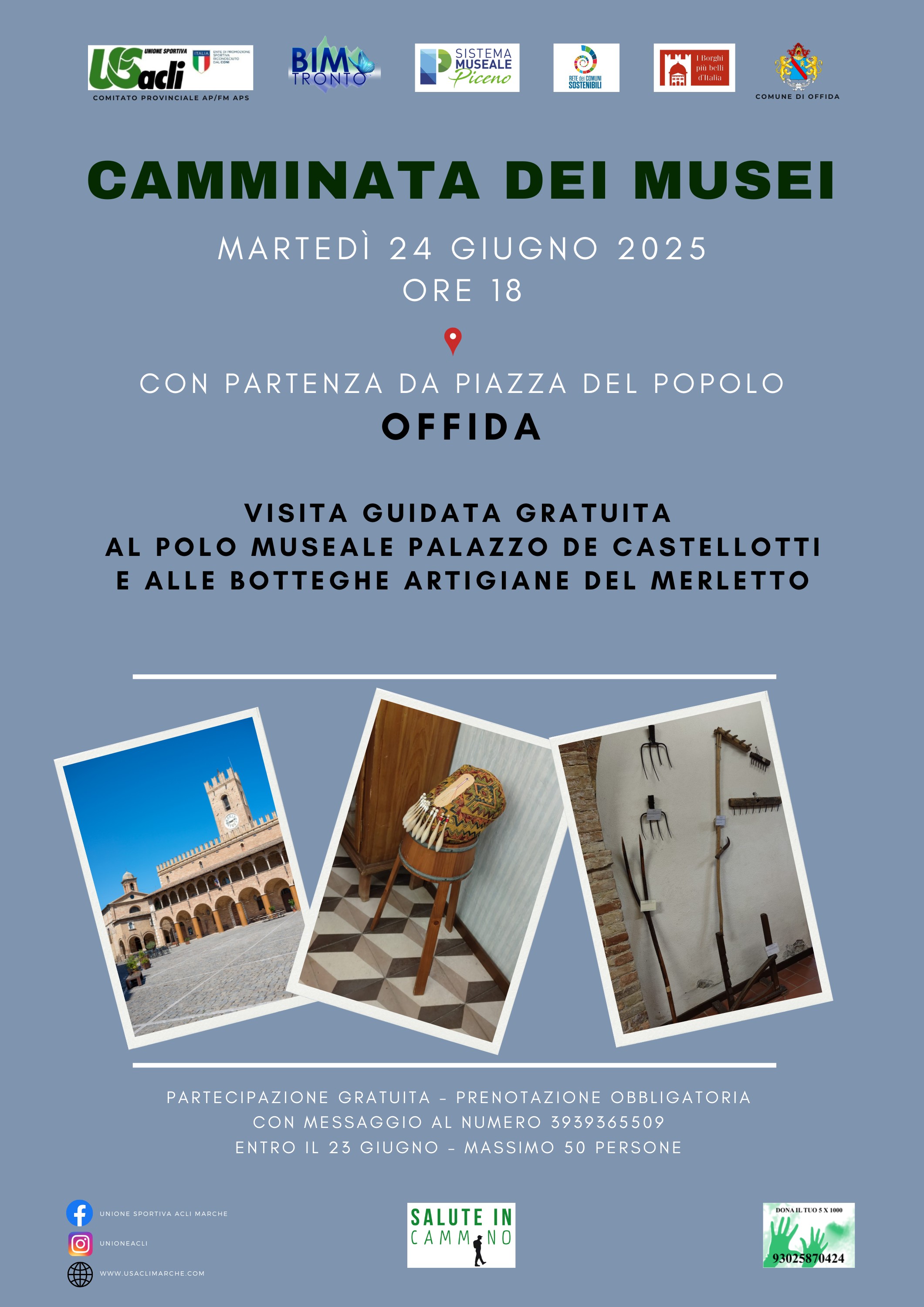 L’iniziativa rientra del progetto “Camminata dei musei”, realizzato per il terzo anno consecutivo da Bim Tronto (che sostiene l’iniziativa) e U.S. Acli Provinciale, che ha già fatto registrare oltre 250 presenze nelle strutture del Sistema Museale Piceno