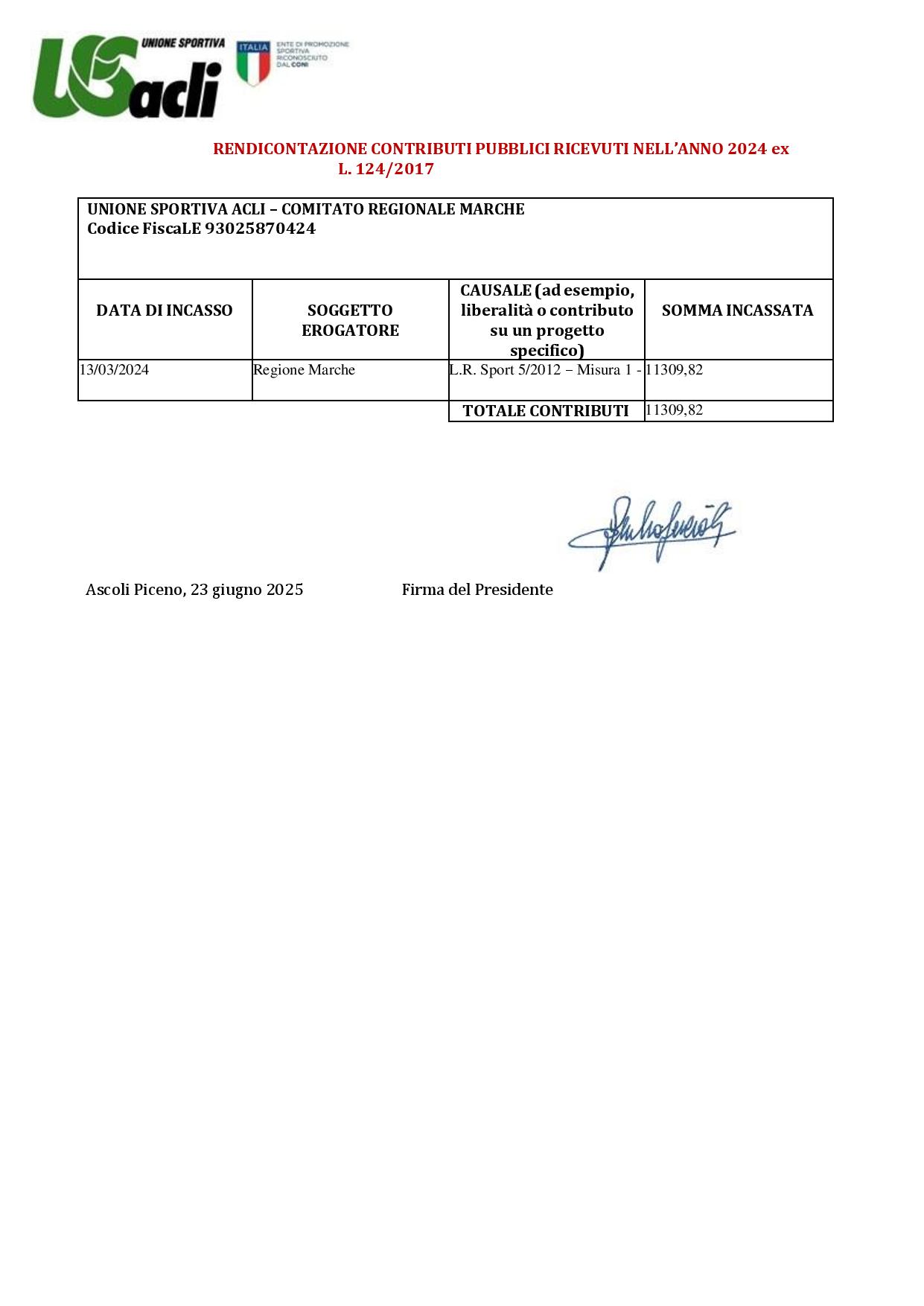 giugno 23, 2025giugno 23, 2025 Unione Sportiva Acli Marche Obblighi di trasparenza anno 2024 Condividi: Fai clic per condividere su X (Si apre in una nuova finestra) X Fai clic per condividere su Facebook (Si apre in una nuova finestra) Facebook Mi piace Caricamento... Correlati