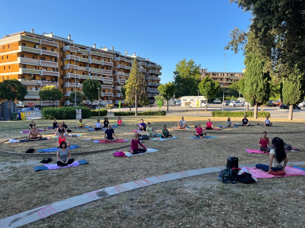 Gli appuntamenti estivi con lo yoga sono diventati ormai un appuntamento fisso dell’estate folignanese visto che vanno avanti ininterrottamente dal 2019, con centinaia di persone coinvolte.