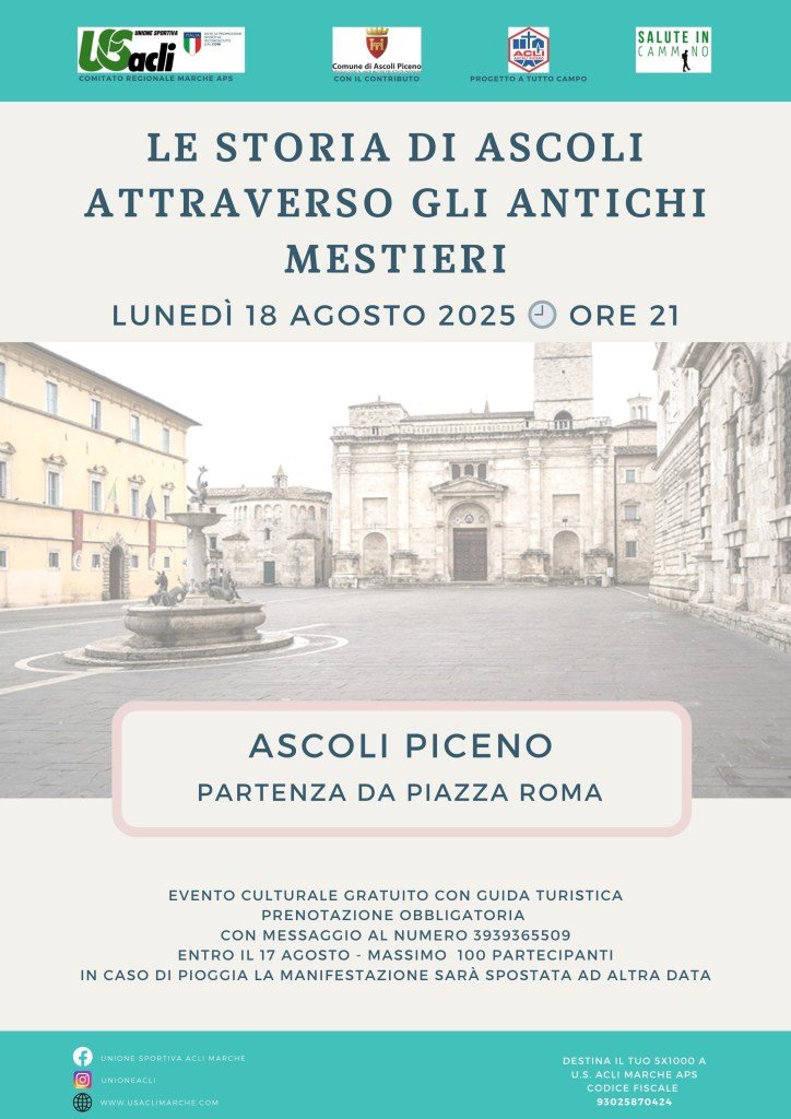 Lunedì 18 agosto è in programma un nuovo appuntamento con le iniziative del progetto “Salute in cammino per la cultura”, curato da Unione Sportiva Acli Marche Aps.