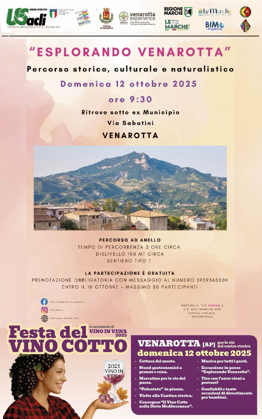La manifestazione è organizzata da U.S. Acli provinciale nell’ambito del progetto “Movimento e salute 2025” realizzato dai comuni di Venarotta e Palmiano nell’ambito della Misura 7 della L.R. 5/2012.