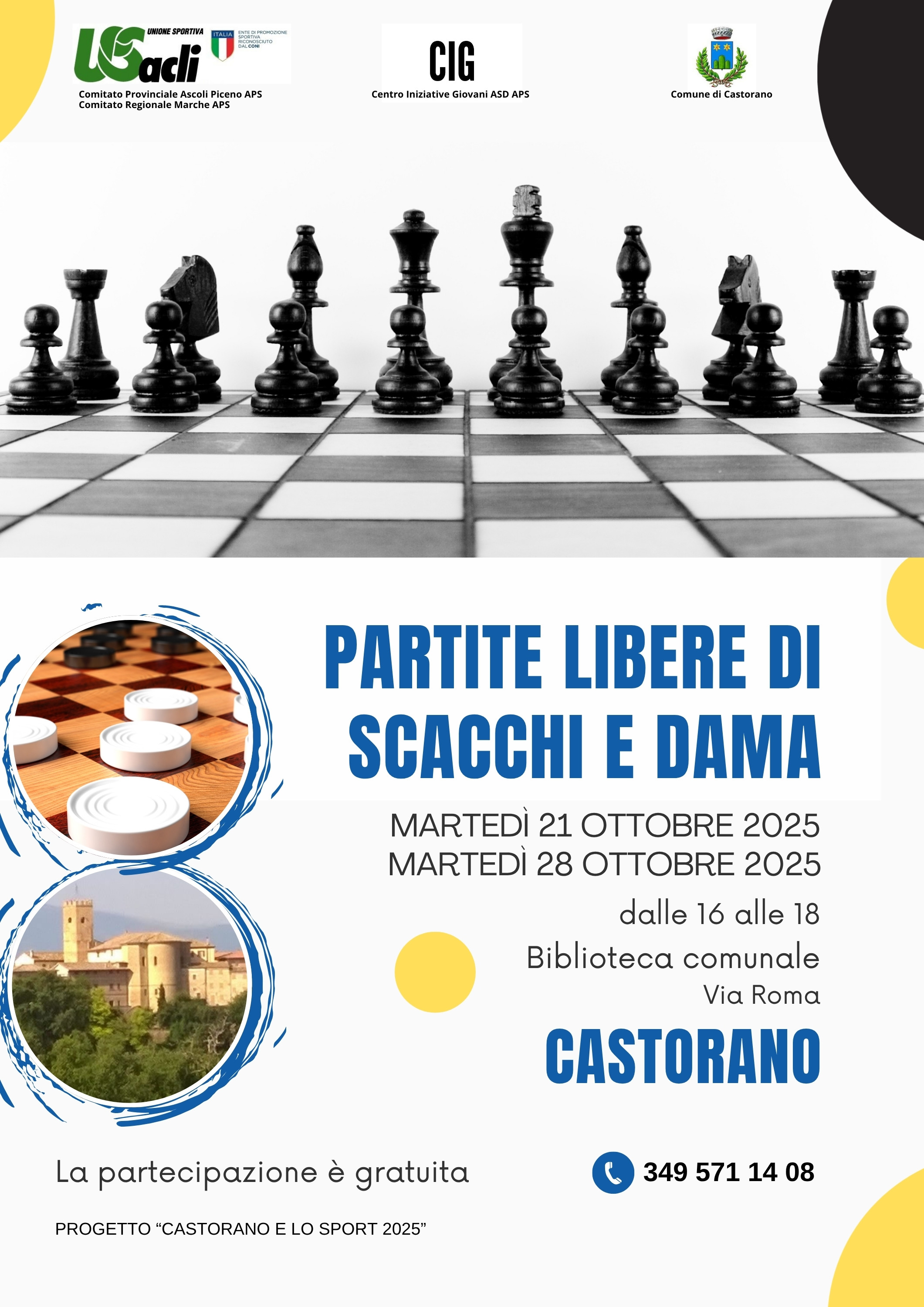 Martedì 21 e martedì 28 ottobre sono in programma due appuntamenti dedicati a partite libere di scacchi e dama.