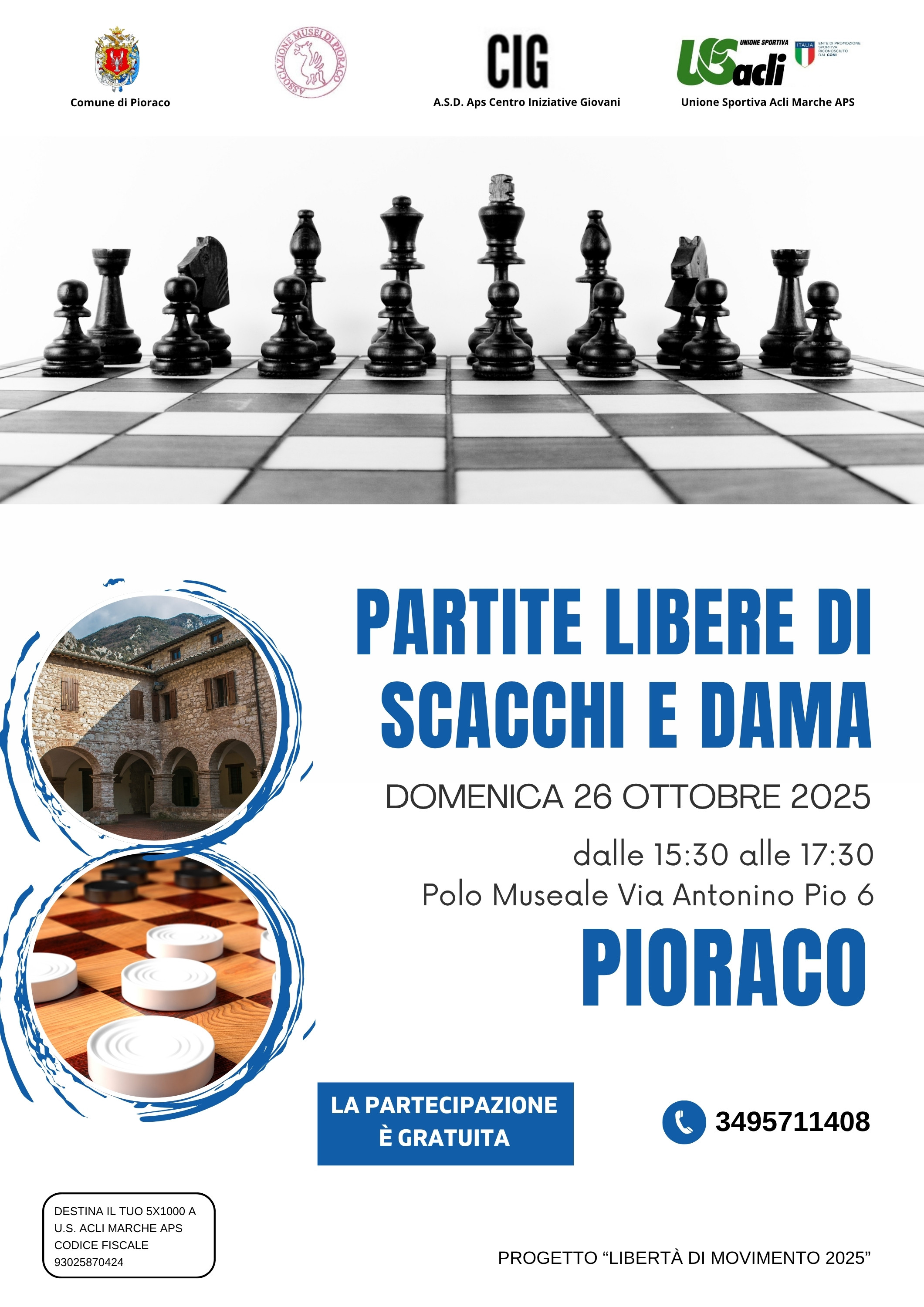 L’iniziativa rientra nel progetto “Libertà di movimento 2025” realizzato dai comuni di Pioraco e Sefro nell’ambito degli interventi finanziati dalla Regione Marche ai sensi della L.R. 5/2012 – Misura 7 , ed è coordinata dall’Unione Sportiva Acli Marche.