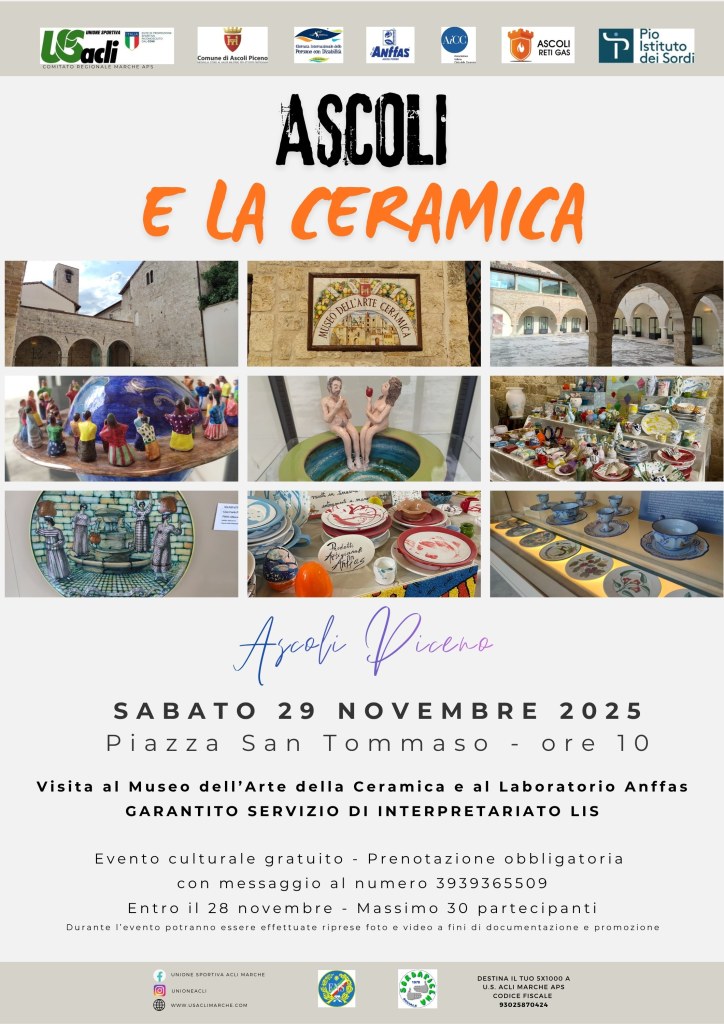 Sabato 29 novembre 2025 ad Ascoli Piceno si terrà un evento speciale dedicato all’arte della ceramica e all’inclusione sociale in prossimità della Giornata Internazionale delle Persone con Disabilità.