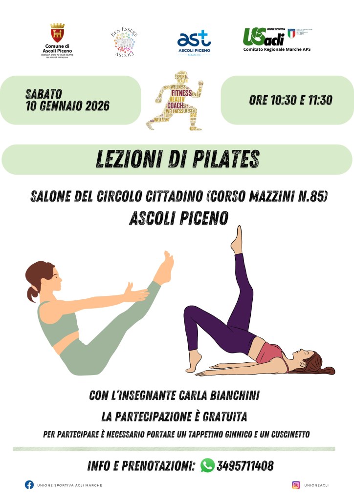 In occasione del “Fine Settimana del Benessere”, promosso da Comune di Ascoli Piceno e coordinato da U.S. Acli Marche, in collaborazione con AST Ascoli Piceno, sono in programma una serie di lezioni gratuite di pilates, yoga e taijiquan/qigong che si svolgeranno sabato 10 Gennaio.