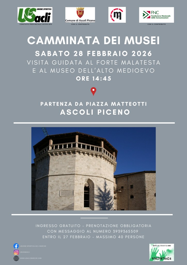 L’iniziativa, aperta a un massimo di 40 persone, è promossa dall’Unione Sportiva Acli – Comitato provinciale Ascoli Piceno/Fermo