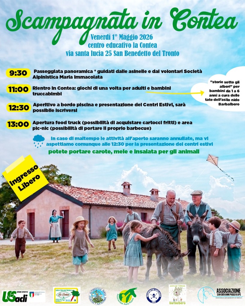 Torna l’atteso appuntamento del 1° maggio: le porte del Centro Educativo “La Contea” si apriranno per la consueta scampagnata. Quest’anno, però, l’evento assume un significato profondo e ha una veste organizzativa del tutto rinnovata. L’iniziativa nasce dalla creatività e dall’energia dei giovani soci delle associazioni AsinoPiceno e San Giovanni Paolo II. In un momento storico segnato dalla sfiducia per il futuro, questi ragazzi hanno scelto di mettere al centro le relazioni umane coinvolgendo altre associazioni, formali e informali: USACLI, Polisportiva Gagliarda, Capitani Coraggiosi, asilo nido Barbalbero e Società Alpinistica Maria Immacolata. Lo staff organizzativo ha curato ogni dettaglio con l’obiettivo di offrire alla cittadinanza non solo una giornata di spensieratezza, ma uno spazio di incontro generazionale. Il programma è un mosaico di attività adatte a tutte le età, dagli zero ai 90 anni: passeggiate, giochi, storie e convivialità. Sarà, inoltre, la vetrina ideale per scoprire in anteprima i centri estivi dedicati ai bambini e ai ragazzi. La giornata prende il via alle 9.30 con una breve escursione nei sentieri agresti vicini a “La Contea” per poi proseguire alle 11.00 con le attività ludiche dedicate a tutte le età. Alle 13.00 sarà aperta l’area picnic. L’accesso è libero e senza obbligo di prenotazione. La struttura rimarrà a disposizione per l’intero pomeriggio; l’invito è rivolto a tutti coloro che vogliono riscoprire il piacere di una giornata rilassante all’insegna della semplicità e dello stare insieme.