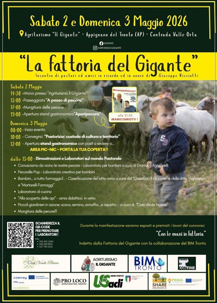 Vuoi fare il pastore per un giorno? Vieni con noi! Il ritrovo è alle ore 14:30 nel parcheggio dell’Agriturismo Il Gigante ad Appignano del Tronto. La partenza è prevista per le 15:00 con una camminata di 30-45 minuti. Il percorso è facilissimo, completamente in piano e senza dislivello. Le famiglie sono benvenute: la strada è comoda e adatta anche ai passeggini. I cani non sono ammessi per evitare di spaventare il gregge. Si consiglia di indossare scarpe e vestiti comodi, evitando i tacchi. Andremo insieme a prendere le pecore al pascolo e torneremo tutti in branco fino all’Agriturismo Il Gigante. Una volta arrivati, assisteremo alla mungitura dal vivo, un’occasione per osservare e imparare da vicino un gesto autentico della vita rurale. Un’esperienza vera e lenta, adatta a grandi e piccoli. Prenotazioni obbligatorie, posti limitati. Per prenotare occorre utilizzare il seguente link: