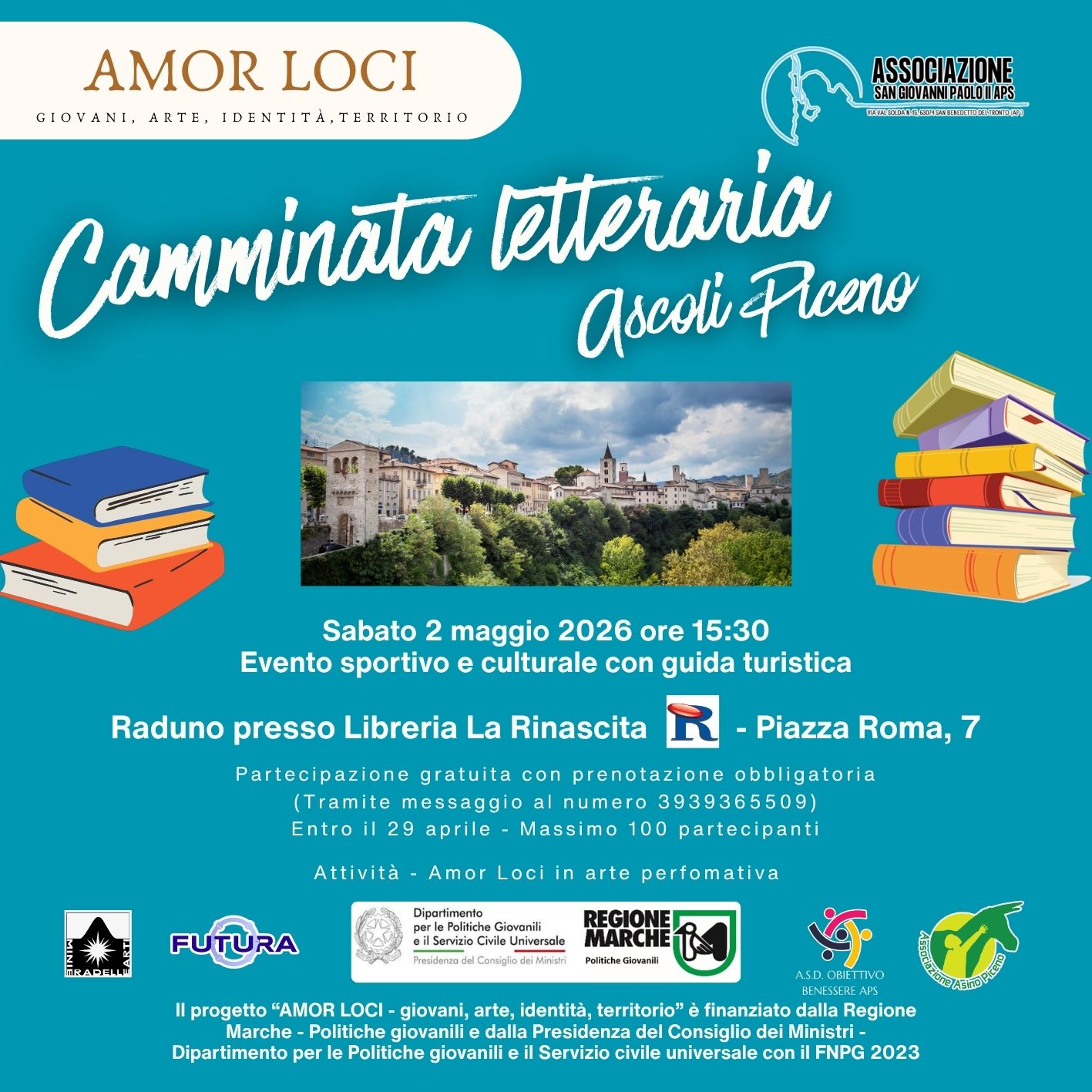 “Amori Loci – giovani, arte, identità, territorio” nasce dalla volontà di far emergere la presenza e il ruolo attivo dei giovani della provincia di Ascoli Piceno, valorizzandone la partecipazione e creando laboratori dedicati all’espressione dei loro interessi.